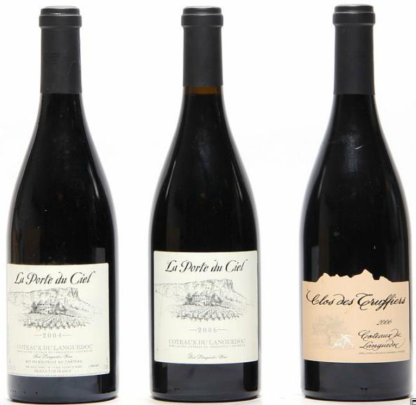 1 bt. La Porte du Ciel, Château de la Negly, Coteaux du Languedoc 2006 A (hf/in). etc. Total 3 bts.