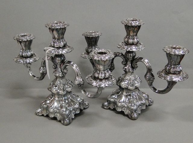 1 par kandelabrar, nysilver med 3 ljusarmar, H23cm