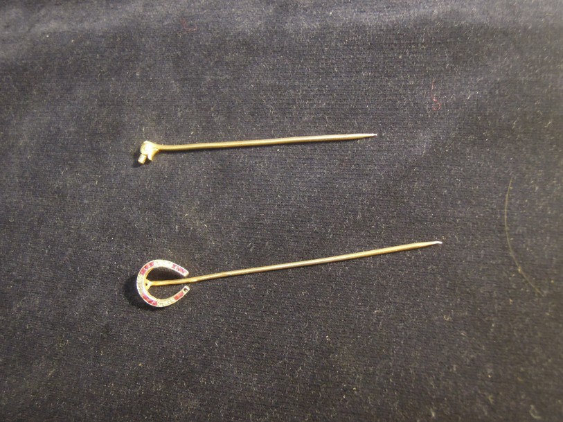 1 Tie pin with a horseshoe mounted with glitter and rubies. Punch not readable