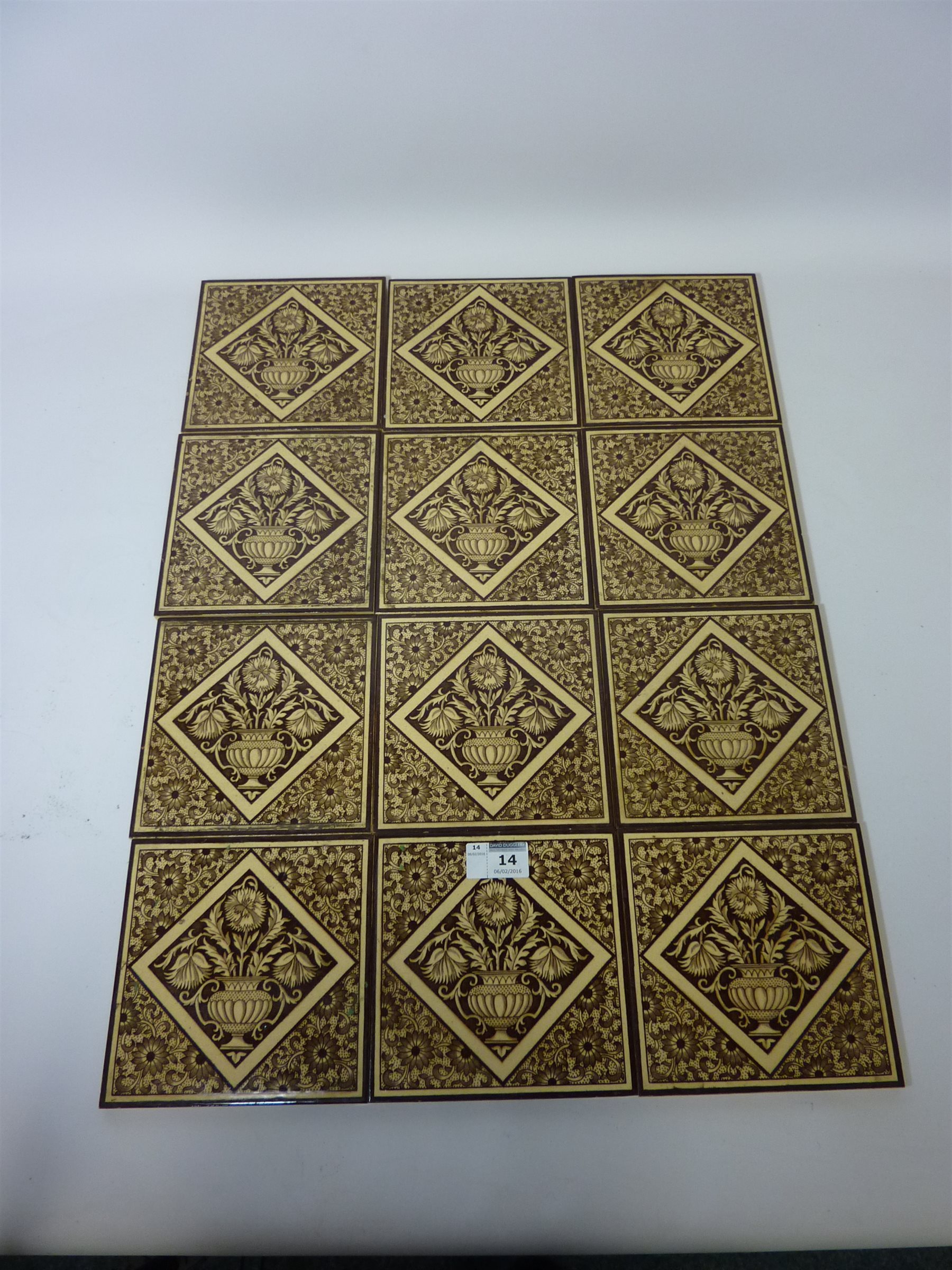 12 matching 19th century Mintons decorative tiles