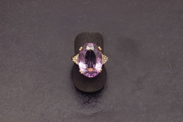 14K gold ring amethyst and diamonds