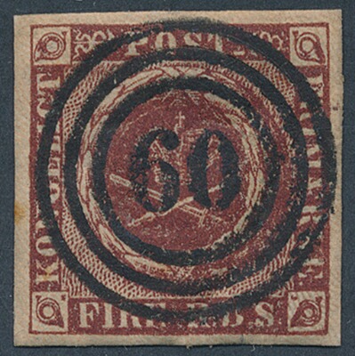 1853. 4 RBS Thiele II, dark redbrown. SUPERB.