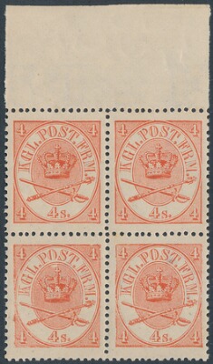 1864. 4 sk. Red. Perfect nh block of FOUR.
