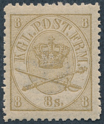1864. 8 sk. Yellow brown, (1870) line perforated. Very fine unused copy. AFA 4200. Cert. Nielsen