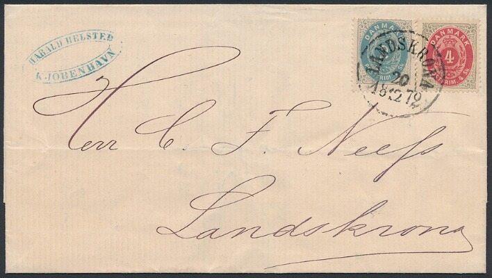 1870. 2 sk. 4b.print and 4 sk. 7.print, pos. B90. SUPERB cover with swedish canc. LANDSKRONA 20.12.1872