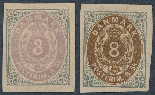 1870. 3 sk. and 8 sk. IMPERFORATED. Scarce