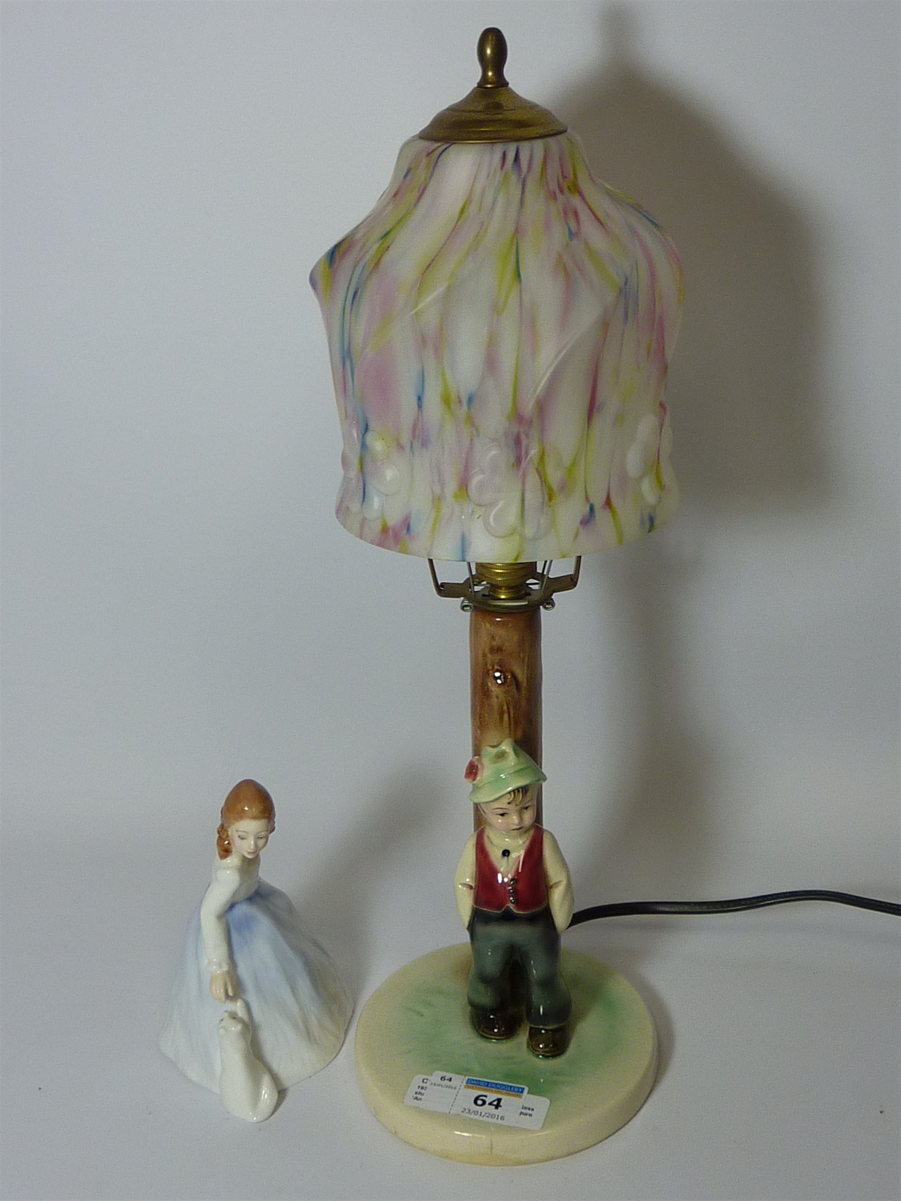 1930s figural table lamp with glass shade H40cm and a Royal Doulton figure 'Andrea' HN3058 (2)