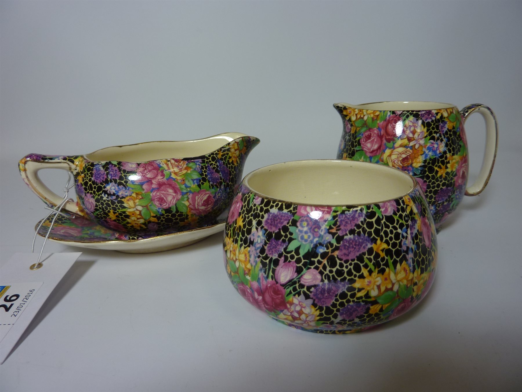1930s Royal Winton 'Hazel' sauce boat, sugar bowl and creamer