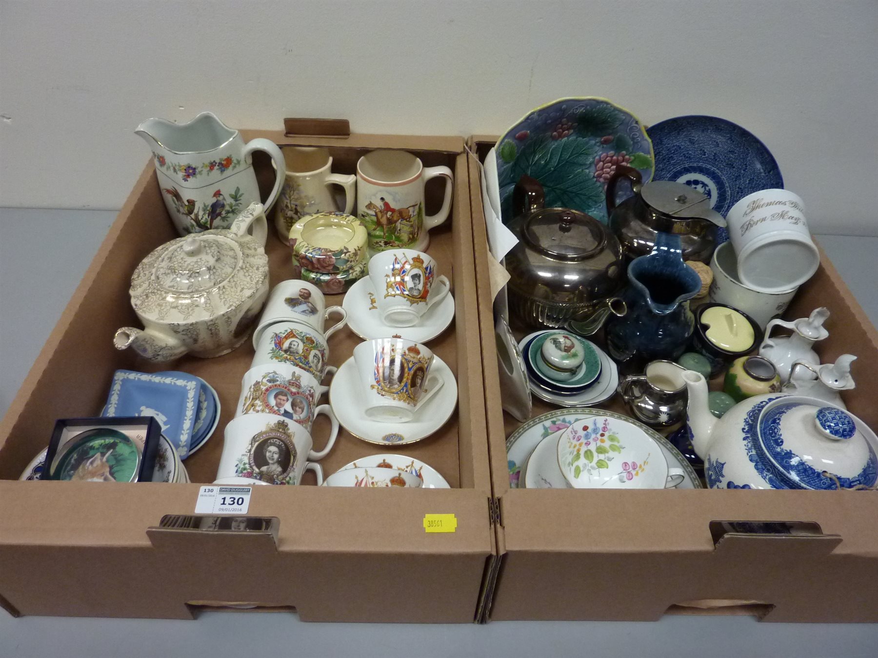 19th century Majolica plate, impressed anchor mark, Wedgwood Jasperware and other decorative ceramics in two boxes
