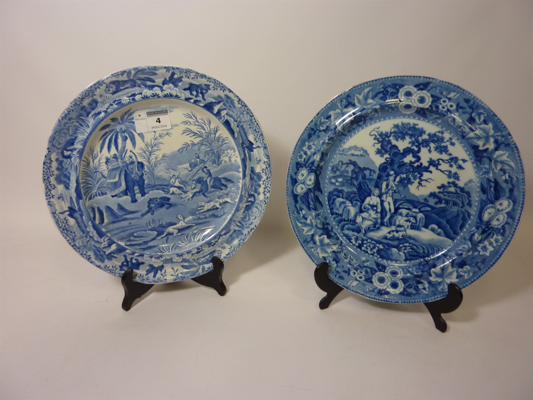 19th Century Spode 'Death of the Bear' blue and white plate 25cm and 19th Century 'Piping Shepherd' plate 25cm