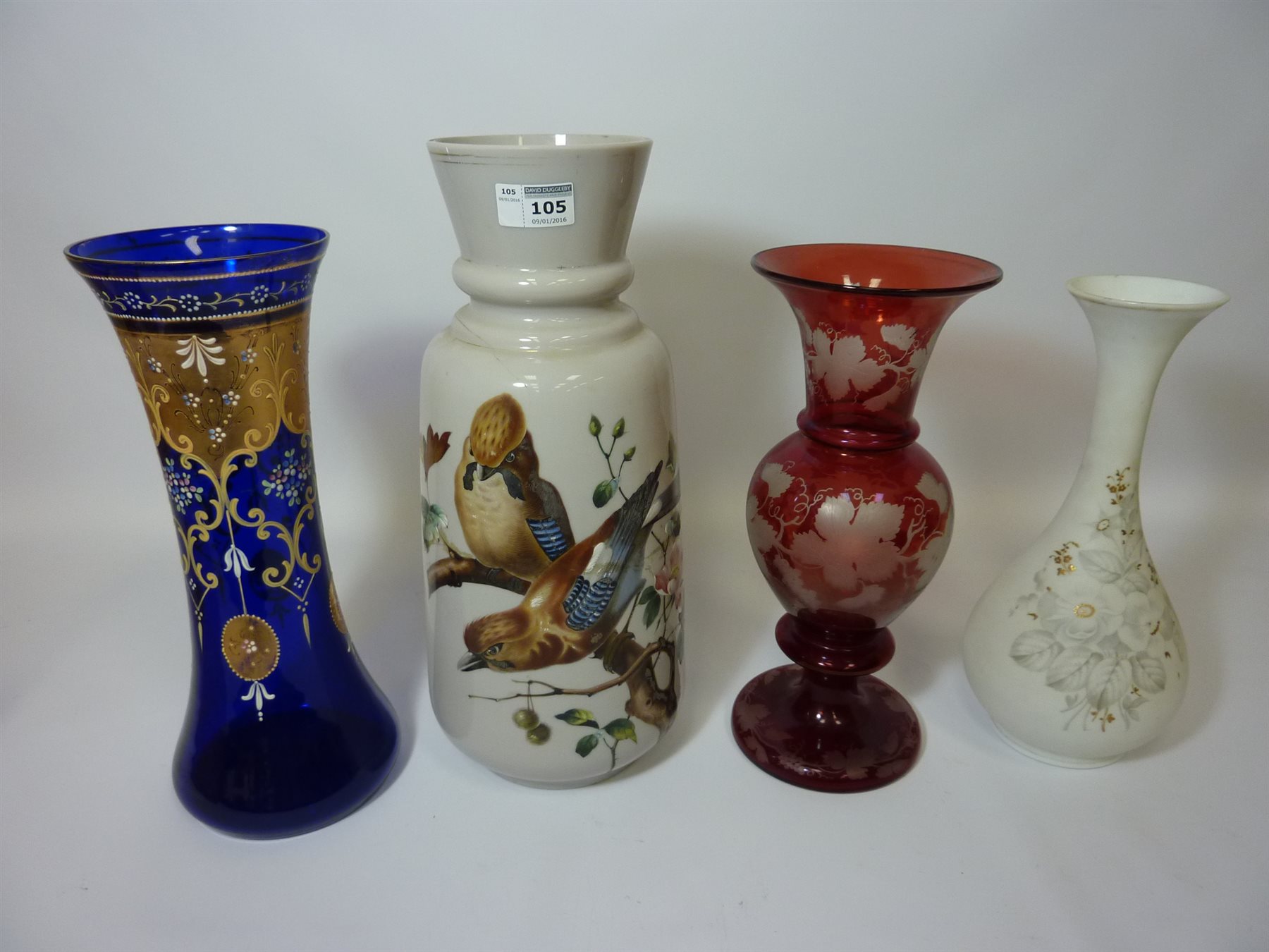 19th/early 20th century ruby flashed vase H31.5cm, and three other glass vases
