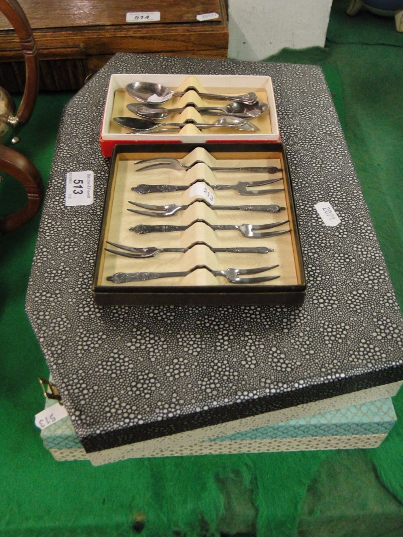 2 Art Deco cased canteens of cutlery, cake forks and teaspoons.