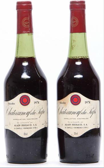 2 bts. Châteauneuf-du-Pape, Alain Perraud 1978 B (ts/us).