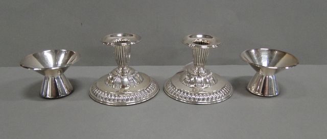 2 pairs of candlesticks, silver, H5 and 7.5 cm, filled