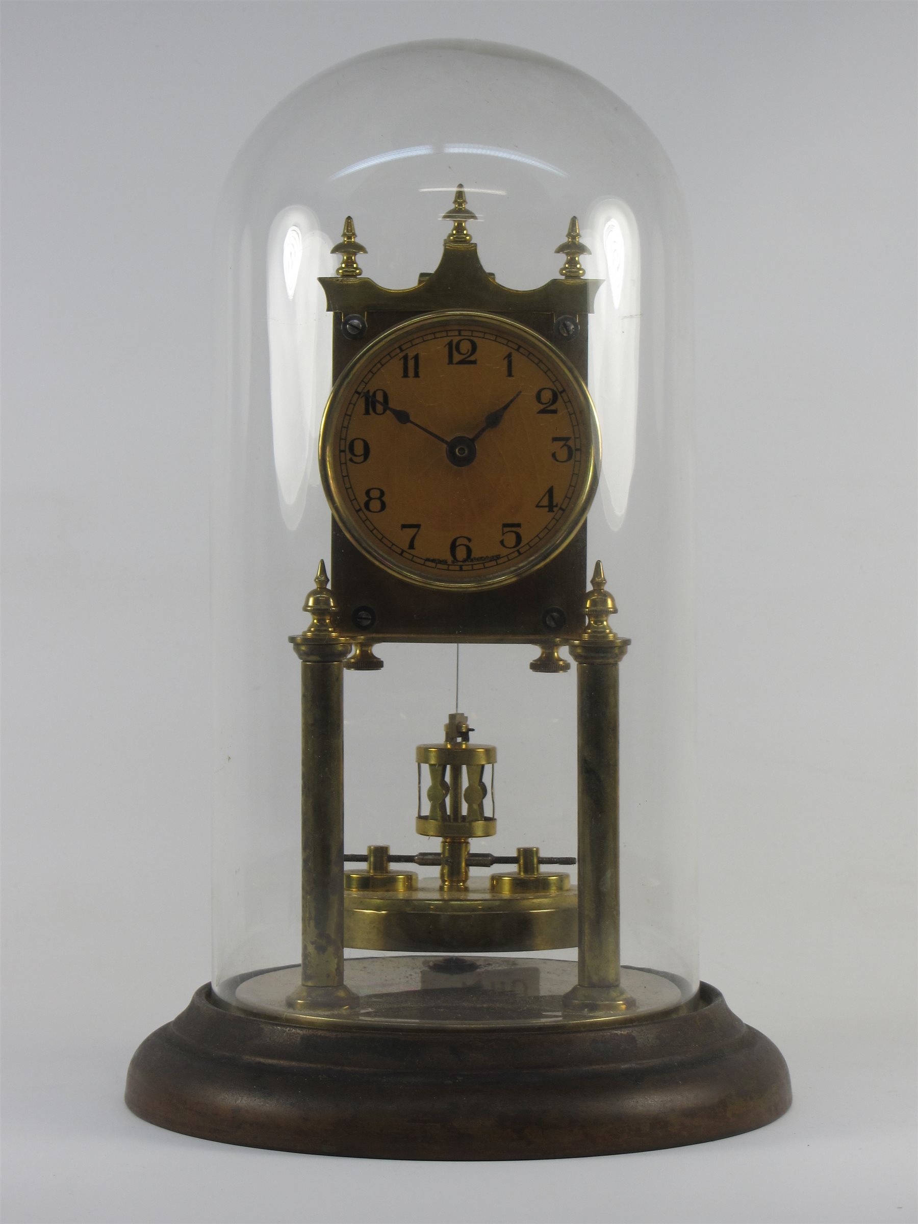 20th century German brass 400-day torsion clock, enclosed in glass dome