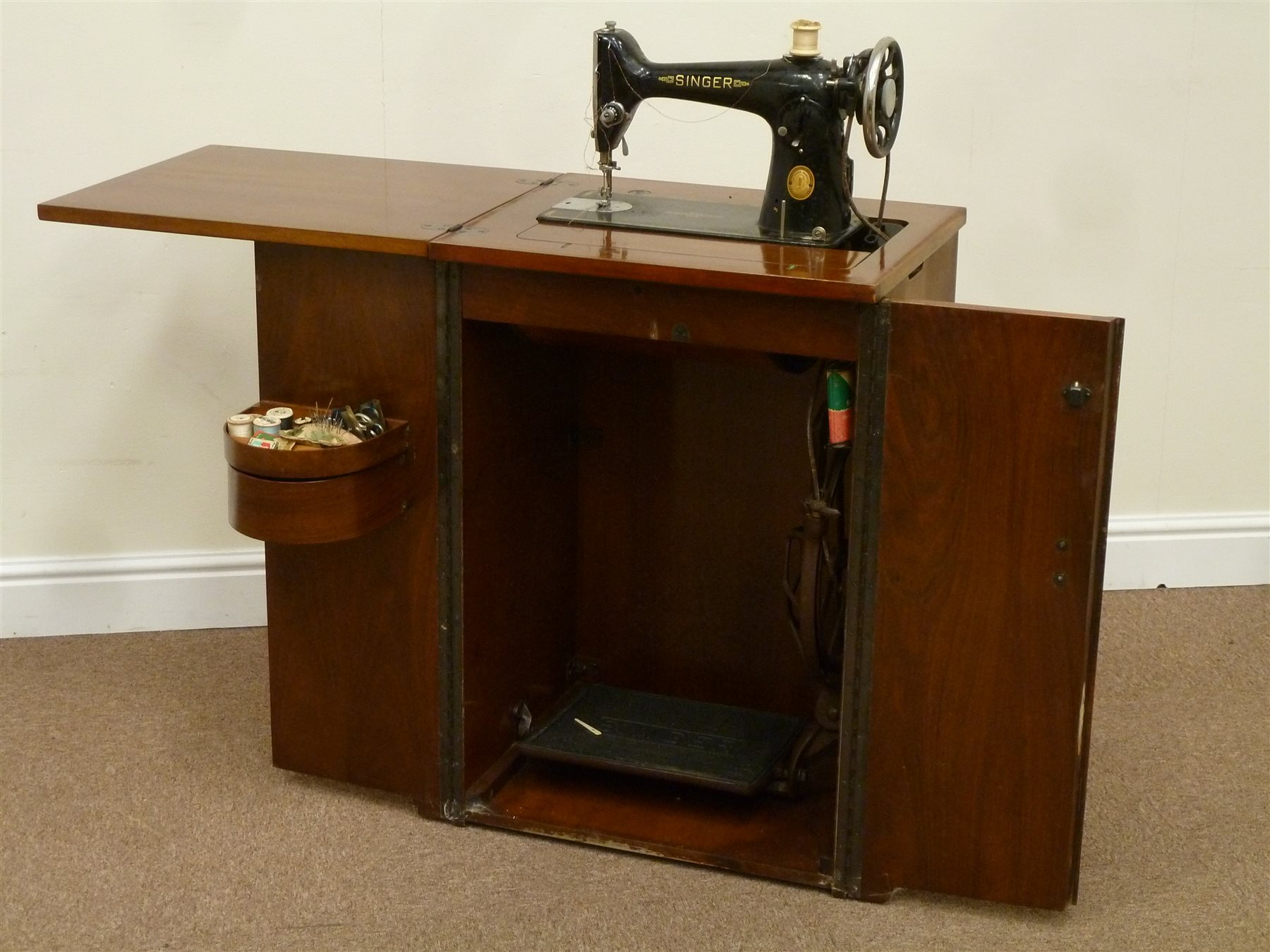 20th century walnut cased singer treadle sewing machine, fitted with hinged top