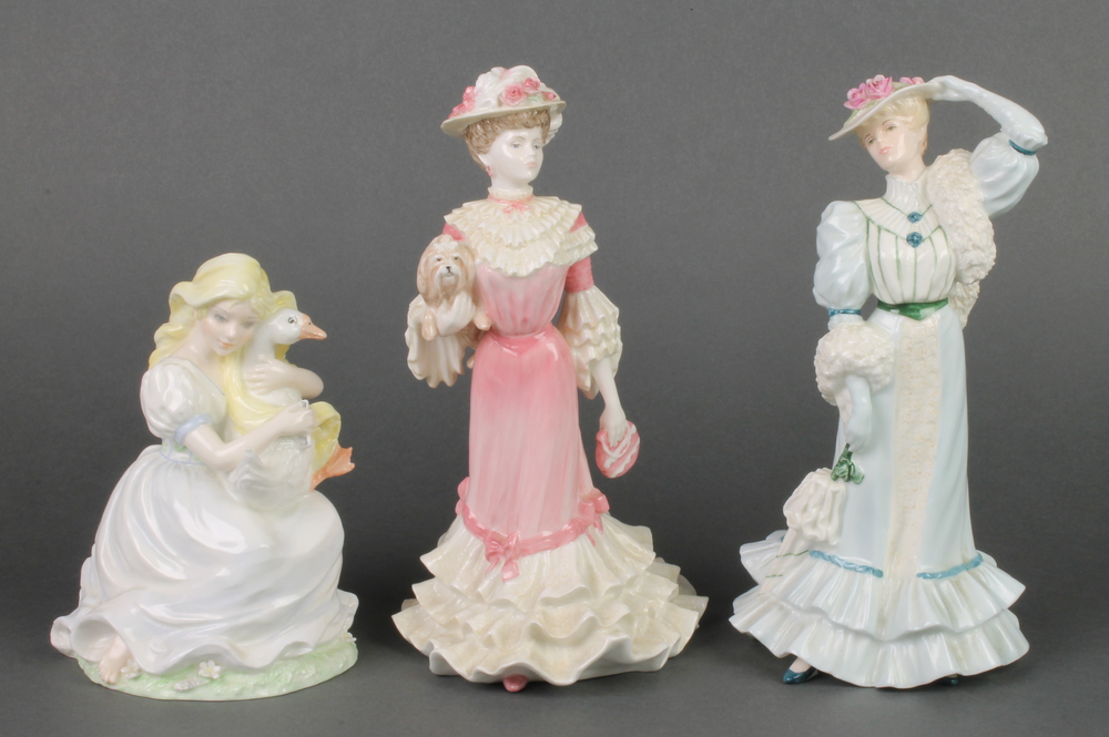 3 Coalport limited edition figures - Goose Girl, Golden Age Georgina and Golden Age Beatrice at the Garden Party