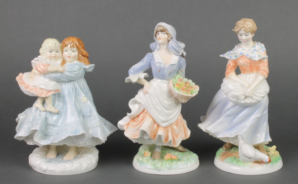 3 Royal Worcester limited edition figures with certificates - Love, Old Country Ways Farmer's Wife and Old Country Ways Rose Picking Apples
