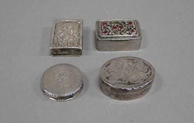 4st lockdosor varav en med stenar, silver bl.a. 1800-tal, D3-4cm, total vikt 70g, en med gravyr