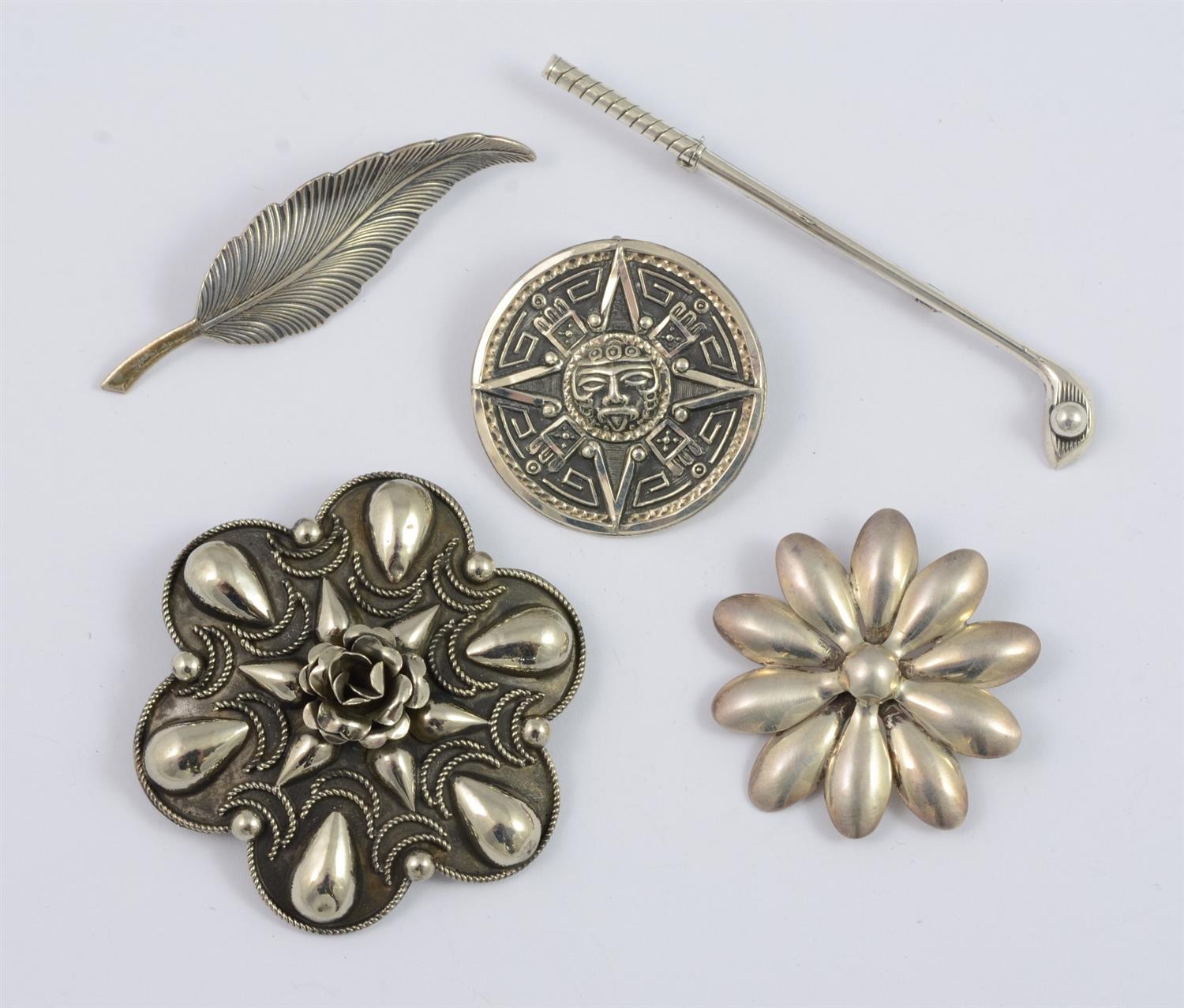 (5) Silver Pins, including Beau Sterling, Danecraft, ALP, Mexico, largest 3 long, total weight 1.125 TO