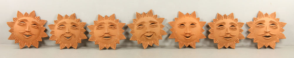 7 Red Clay Pottery Sun Faces
