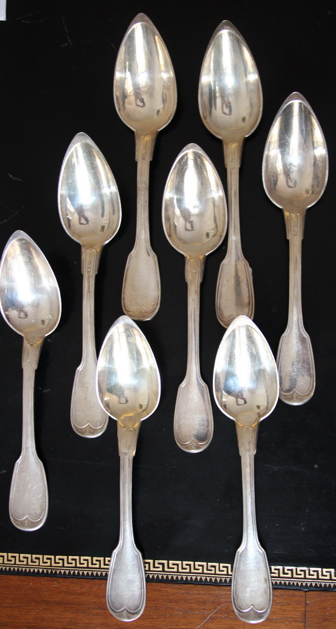 8 cuillers à soupe en argent ,poinçons Vieillard, début XIXème siècle, poids 674 gr