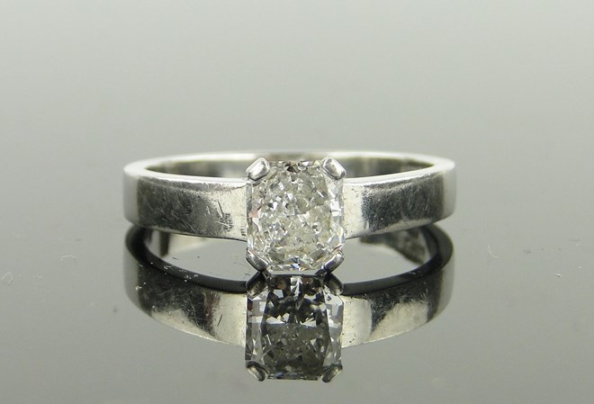 A 1.07ct cut corner rectangular brilliant solitaire diamond ring