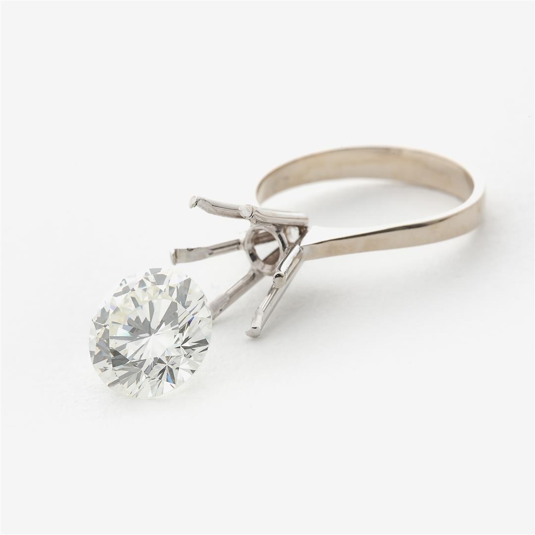 Centred by a brilliant-cut diamond weighing 3.57 ct, with an HRD grading report stating that the colour is I, and the clarity SI1, numbered 180000177192. Gross weight approx. 3.3 g Ring size 55/17.5