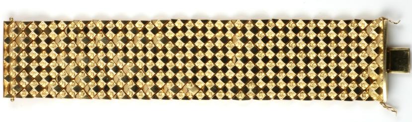 The broad, flexible band consisting of partially processed faceted links, L. 19.5 cm. Hover to zoom