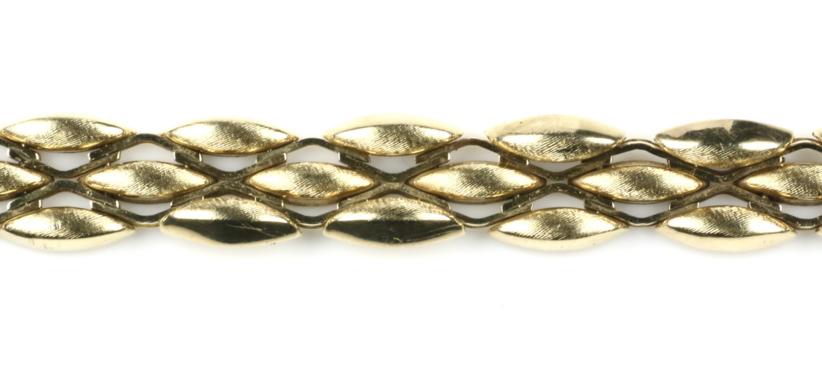 Consisting of three rows of partly matted rhombus-shaped links, L. 19.5 cm. Gross 22 grams. Hover to zoom