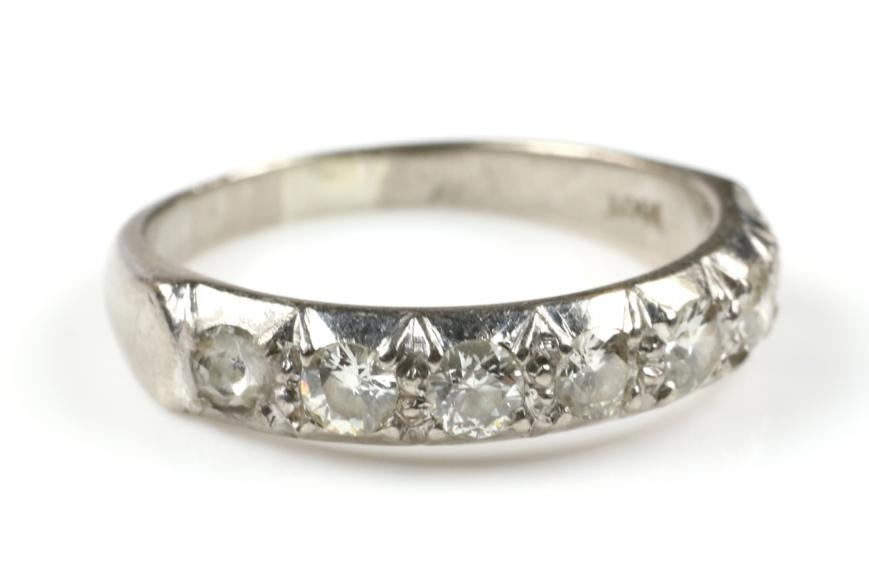 The front set with six former cutting diamonds and one imitation diamonds, ring size 19 mm. Gross 4 grams. Hover to zoom