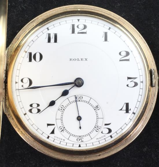 A 1920's 9ct gold Rolex keyless lever half hunter pocket watch