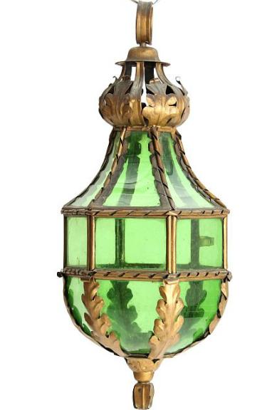 A 19th century bronzed metal and green glass hall lantern