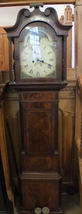 A 19th Century inlaid Mahogany longcase clock with moon roller by Hiul, Birmingham