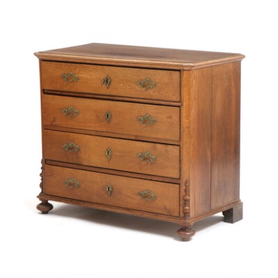 A 19th century oak chest of drawers, decorated with bronze mountings