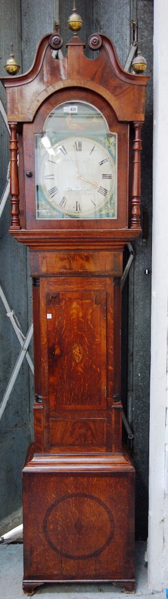 with three gilt metal spherical finials and a broken arch pediment over an arch top raised convex chapter dial, detail 'Whitmore & Son, Northampton', over a pinched waist case