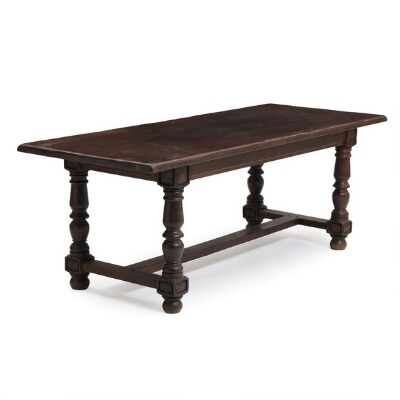 A 20th century Baroque style oak refectory table with foot bars