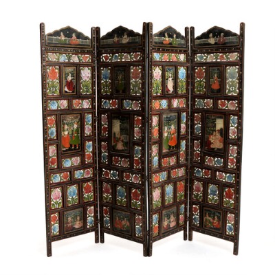 A 20th century carved and painted Indo-Persian screen