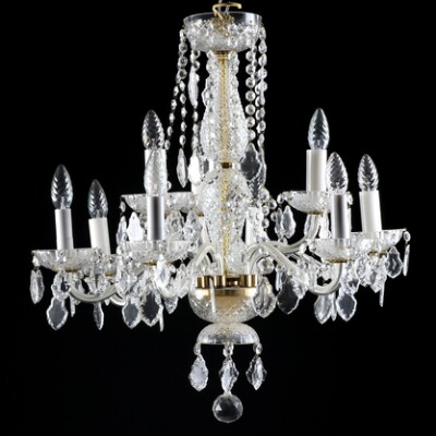 A 20th century nine-light crystal chandelier with baluster shaped stem