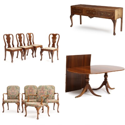 A 20th century Queen Anne and Regency style walnut dining room