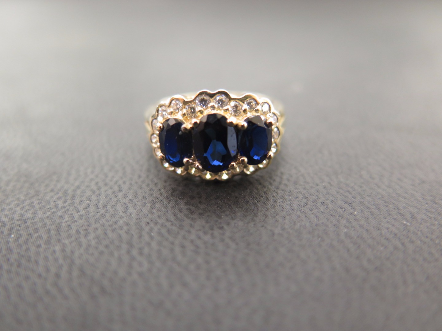 A 9ct gold cubic zirconia and synthetic sapphire cluster ring - Hallmarked London