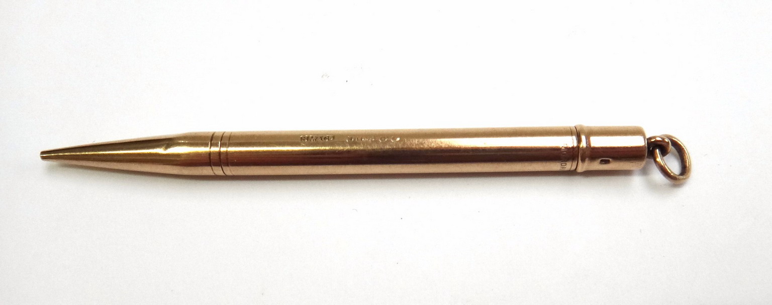 A 9ct gold propelling pencil by S. Mordan & Co., hallmarked London 1937, 9.5cm.