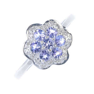 A 9ct gold tanzanite and diamond floral cluster ring.
