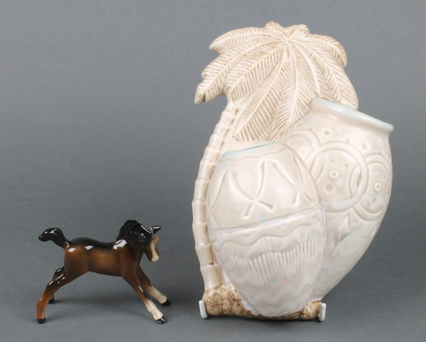 A Beswick wall pocket in the form of 2 vases beneath a palm tree 1063 and a ditto figure of a standing foal