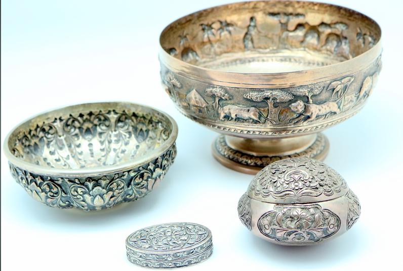 A betelnotendoosje, two bowls and a pillbox, bwzg and base