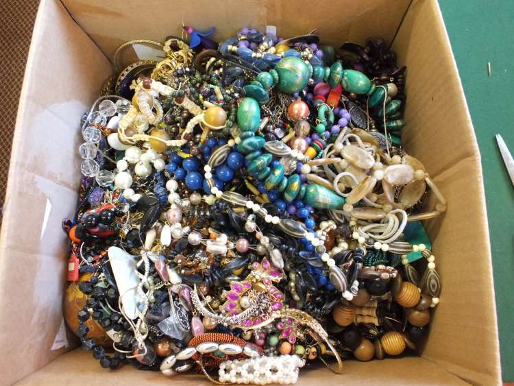 A box of various costume jewellery
