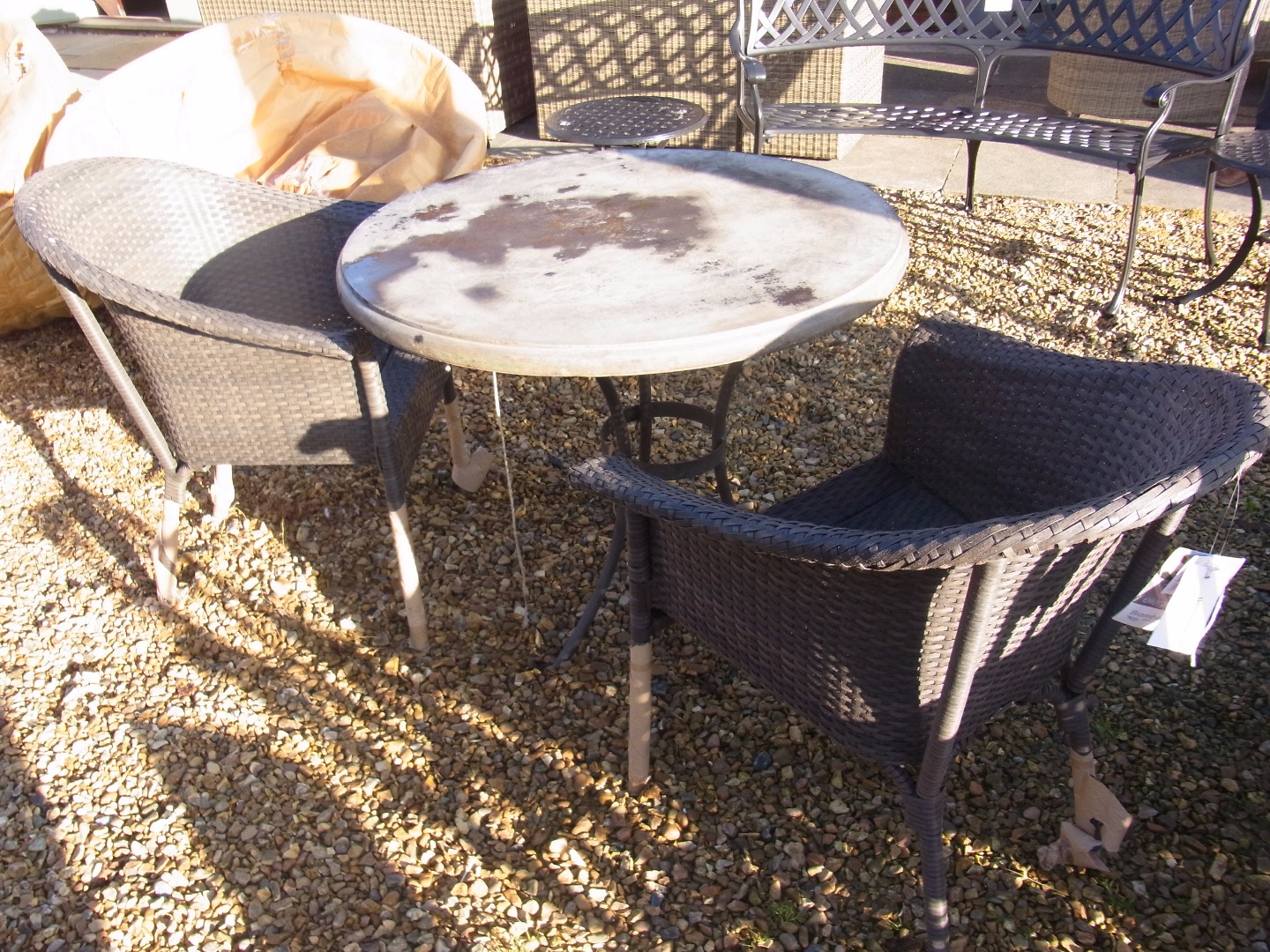 A Bramblecrest stone bistro table with two chairs - Diameter 90cm