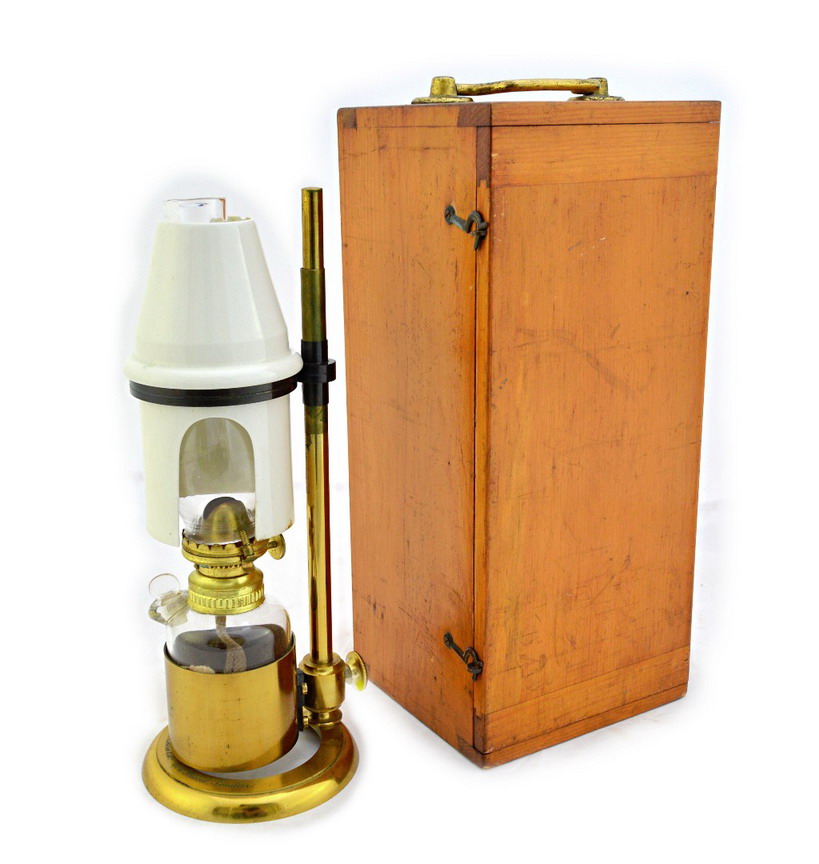 by J. H. Steward, with height adjustable pottery shade and glass oil reservoir, the circular base detailed 'J. H. Steward, 406 Strand, London'
