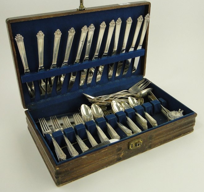 A canteen of American sterling silver flatware for 12 people, with Anthemion finials, no makers marks 120 oz weighable.
