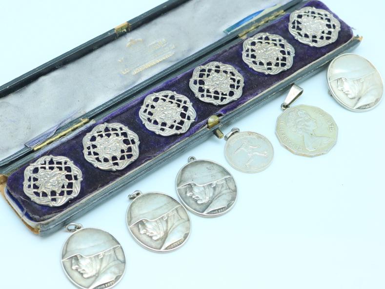 A case with silver buttons, four Swiss medals in 1918, two munthangere Hover to zoom